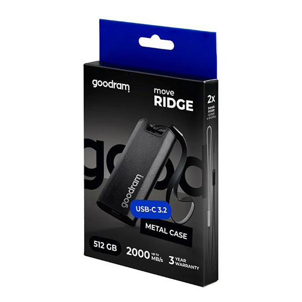 SSD Zewnętrzny Goodram Move Ridge, SSDR-GMRE-512-K0, 512GB, czarny, USB-C 3.2
