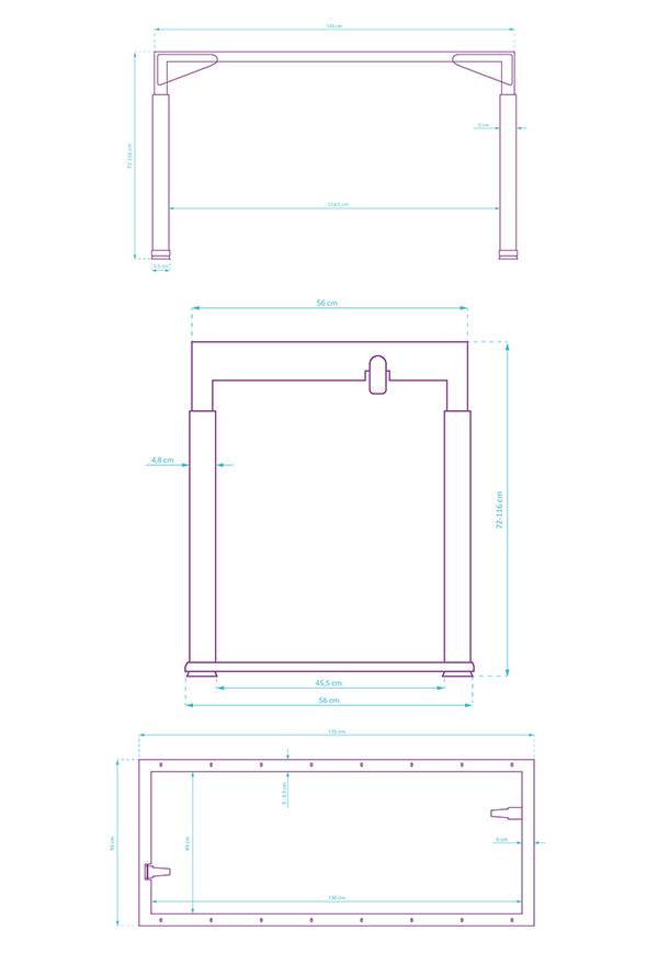 Stelaż został dodatkowo wzmocniony w kluczowych punktach, co znacznie zwiększa jego stabilność nawet podczas intensywnego użytkowania. Regulowane stopki pozwalają wyrównać nierówności podłogi do 1 cm, a gumowana podstawa chroni powierzchnię przed zarysowaniami. Zaokrąglone krawędzie wsporników dodają całości eleganckiego wyglądu i zapewniają bezpieczeństwo.