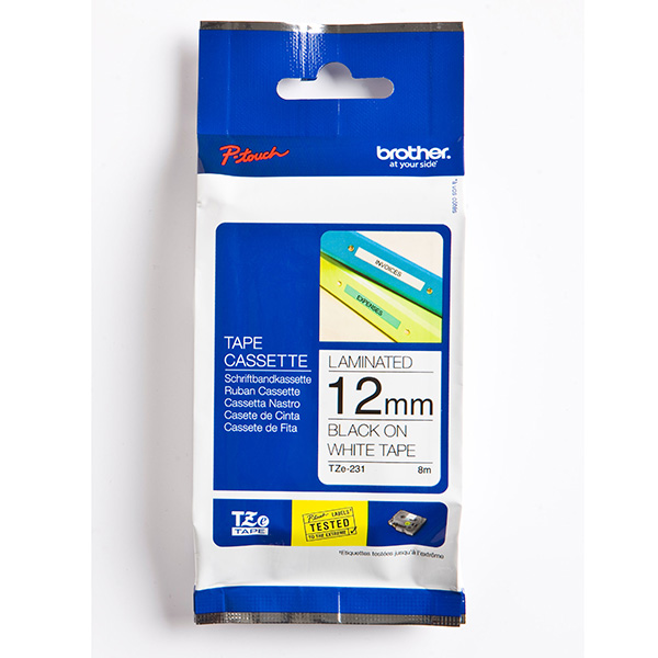 Brother oryginalny taśma do drukarek etykiet, Brother, TZE-231, czarny druk/biały podkład, laminowane, 8m, 12mm