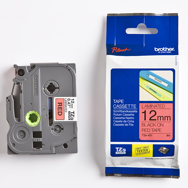 Brother oryginalny taśma do drukarek etykiet, Brother, TZE-431, czarny druk/czerwony podkład, laminowane, 8m, 12mm