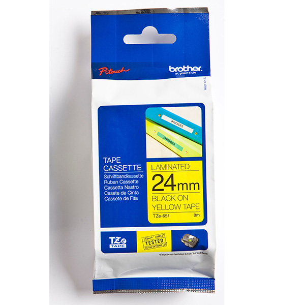 Brother oryginalny taśma do drukarek etykiet, Brother, TZE-651, czarny druk/żółty podkład, laminowane, 8m, 24mm