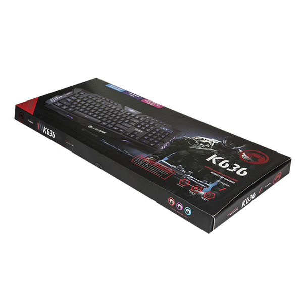Marvo K636 Klawiatura przewodowa (USB) US, czarna do gry, podświetlana, uszkodzone opakowanie rodzaj B, .A-D, EOL