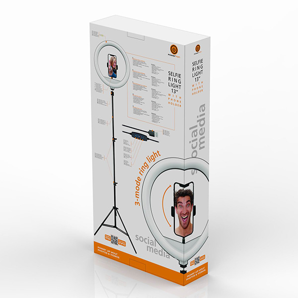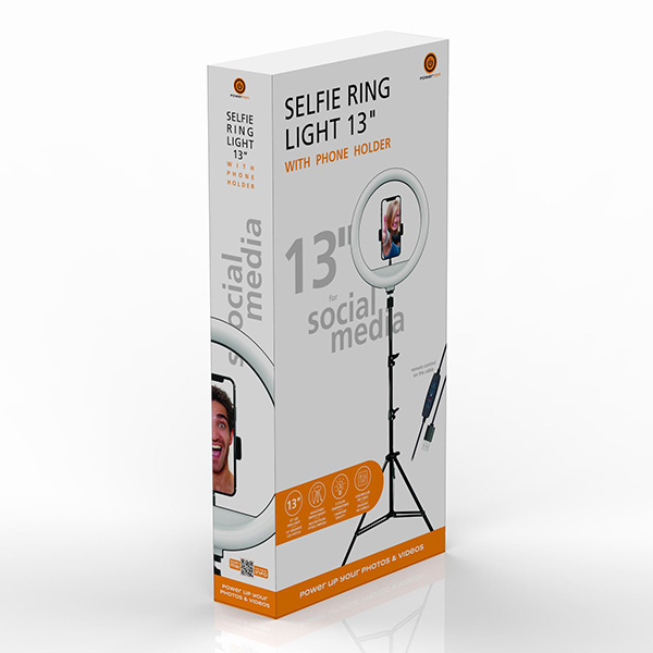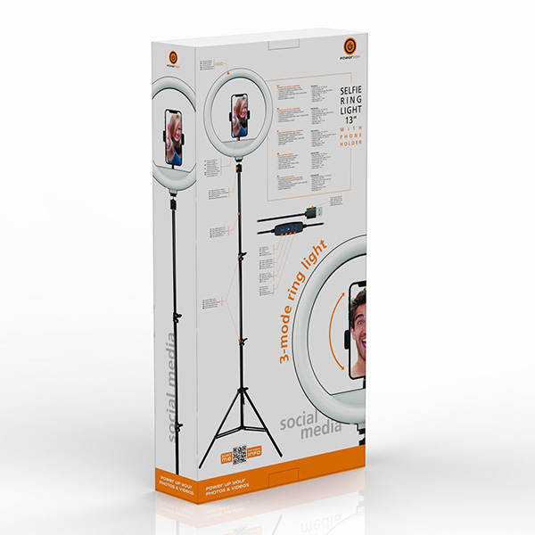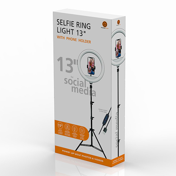 Powerton lampa pierścieniowa 13", Dioda LED biała, duże, regulacja temepratury i intensywności światła, uchwyt telefonu i statyw,
