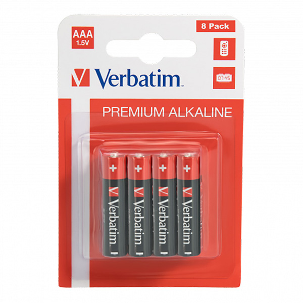 Bateria jednorazowa alkaliczna, paluszek, AAA, 1.5V, Verbatim, blistr, 8-pack, 49502