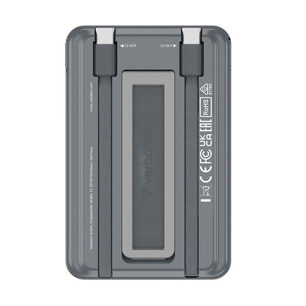 Power Bank Verbatim Charge n Go o pojemności 5000 mAh to wszechstronne i kompaktowe źródło zasilania zapasowego, stworzone z myślą o użytkownikach, którzy cenią sobie mobilność i wygodę. Idealny na intensywne dni, podróże i codzienne użytkowanie, zapewnia niezawodne ładowanie smartfonów, słuchawek, zegarków i innych małych urządzeń. Dzięki zintegrowanym dwóm kablom USB-C oraz funkcji ładowania bezprzewodowego, urządzenie oferuje pełną swobodę i elastyczność w każdej sytuacji.
