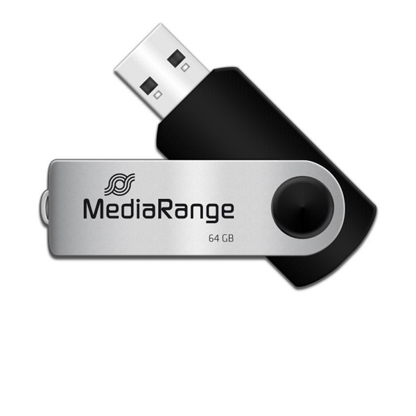 MediaRange USB flash disk, USB USB 2.0, 64GB, czarny, MR912, USB A, swivel / twister