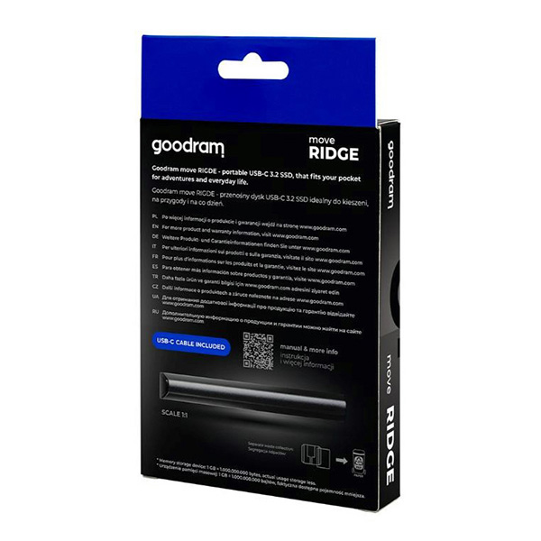 SSD Zewnętrzny Goodram Move Ridge, SSDR-GMRE-512-K0, 512GB, czarny, USB-C 3.2