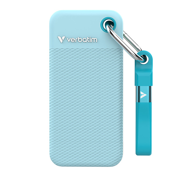 SSD Zewnętrzny Verbatim Pocket SSD letní edice, 32324, 1000GB, Polar Blue, w zestawie 2 gumowe osłony, USB C