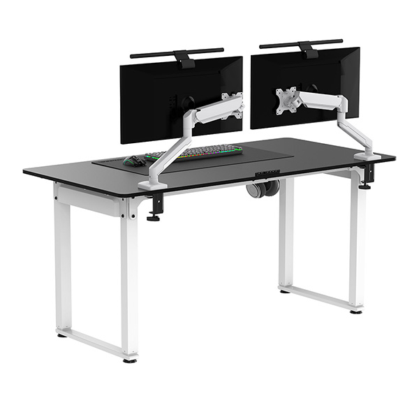 Pod blatem znajdują się dwa elastyczne kosze na kable, które pomagają utrzymać porządek. Dodatkowo na przedniej lewej stronie zamontowany jest uchwyt na słuchawki lub pad, co zwiększa komfort i wygodę użytkowania.