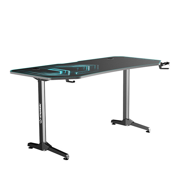 ULTRADESK Biurko dla gracza FRAG XXL BLUE, 160 x 75 cm, 75 cm, uchwyty na słuchawki i napoje, z podkładką XXL na cały pulpit, uszk