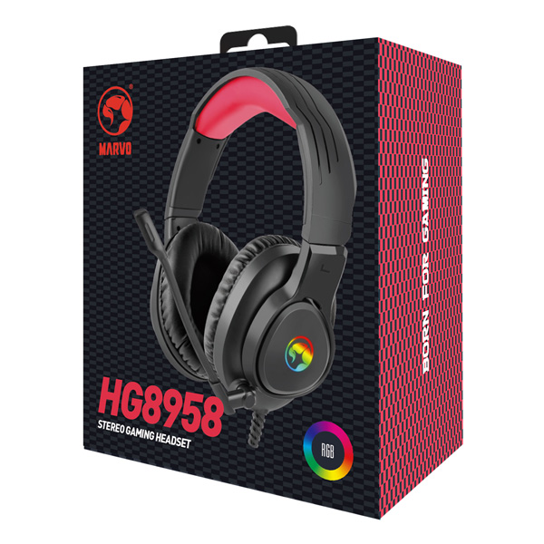 Marvo HG8958 słuchawki z mikrofonem, przewodowa, czarna, do gry, uszkodzone opakowanie typ B, 3.5 mm jack + rozdvojka + USB, EOL