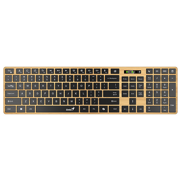 Bezprzewodowa klawiatura Genius SlimStar 7250BT to nowoczesne narzędzie stworzone z myślą o maksymalnym komforcie i efektywności pracy – zarówno w biurze, jak i w domowym zaciszu. Jej elegancki, smukły design inspirowany skandynawskim stylem z wykorzystaniem kolorystyki przypominającej drewno sosnowe świetnie komponuje się z każdym nowoczesnym miejscem pracy.